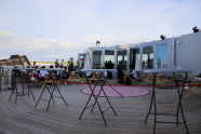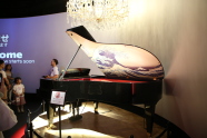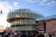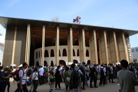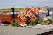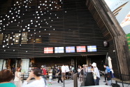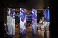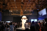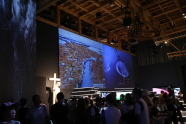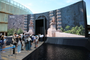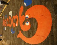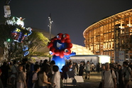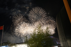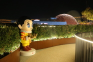 夜のミャクミャクも愛らしい。ガンダムとのコラボ。 |
