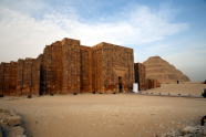 入口に当たる中央回廊はピラミッドと比べ新しさを感じてしまう。そこを抜けるとピラミッド前に設けられた大広場が眼前に広がる。狭い回廊から開放感のある広場、そしてその向こうの階段ピラミッド。一番古いピラミッドとして現在も雄姿を見せてくれている。
