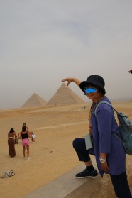 昼食は3大ピラミッドの見渡せるレストランへの移動となる。ローカルフードレストランかな?昨夜の一人参加の男女と相席。隣は工藤さん。仙台から参加している。74歳の誕生日だとか?撮影スポットでもあり食後スナップタイム。