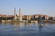 アスワンハイダム:1898年アスワンダム(長さ2140M ・高さ51M )が着工1902年完成。10KM 上流に幅3600M・高さ111Mのダムが1970年にソ連の協力で完成。人造湖はナビル湖。